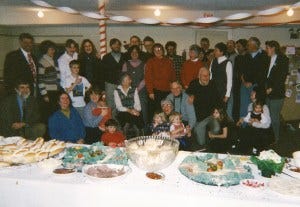 The next day, while she sat in church, enjoying a few birthday greetings from friends and probably thinking that it had been a nice party, if a bit understated for an 80th birthday celebration, we worked frantically just below the sanctuary. We decorated the basement function room with crepe paper and balloons, brought in platters of food and an enormous cake, and greeted out-of-town family and friends who arrived to fill the space while the church service continued upstairs.