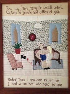My mom read me poetry—Robert Louis Stevenson and Emily Dickinson and Robert Frost—and anything she regarded as “good” books—Charlotte’s Web and Little House on the Prairie and Winnie the Pooh.