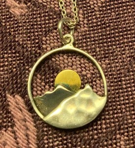 I wear this pendant, which is either the sun rising, or the sun setting, over the mountains, which my kids gave me a couple of years ago, to remind me that you just have to keep climbing. And you can change your life.