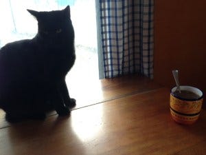 I got to use my own bathroom, without the risk of encountering any of the mean girls in the school lavatory. I got to sit at our little round kitchen table, and read a book while I ate. Since my mother wasn’t home to object, I let my cat sit on the table for company. It was the best part of my day.