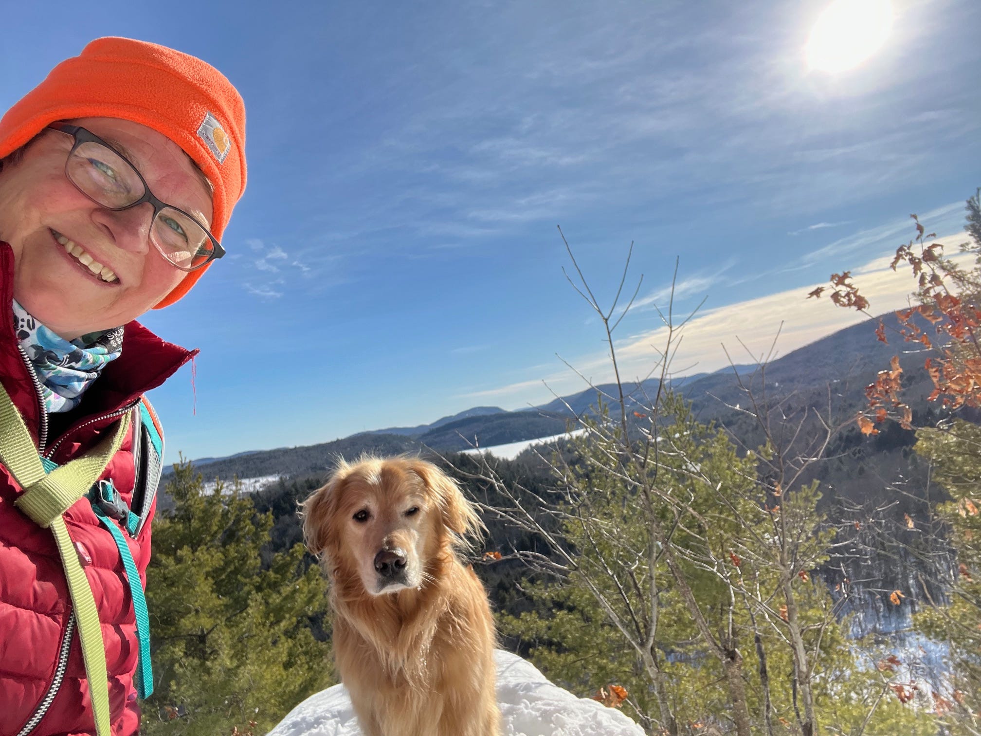 Three days later, Eli and I went back to Maggie’s Nature Park for another hike. By then the trails had been traversed by several others, and while I still needed my snowshoes, I was able to make it to the top of Peaked Mountain without much difficulty. I haven’t been out for a hike since Monday’s storm and the ensuing deep freeze, but I’m sure I’ll find the conditions have changed quite a bit, and I will probably be back to Microspikes, at least until the next snowstorm.