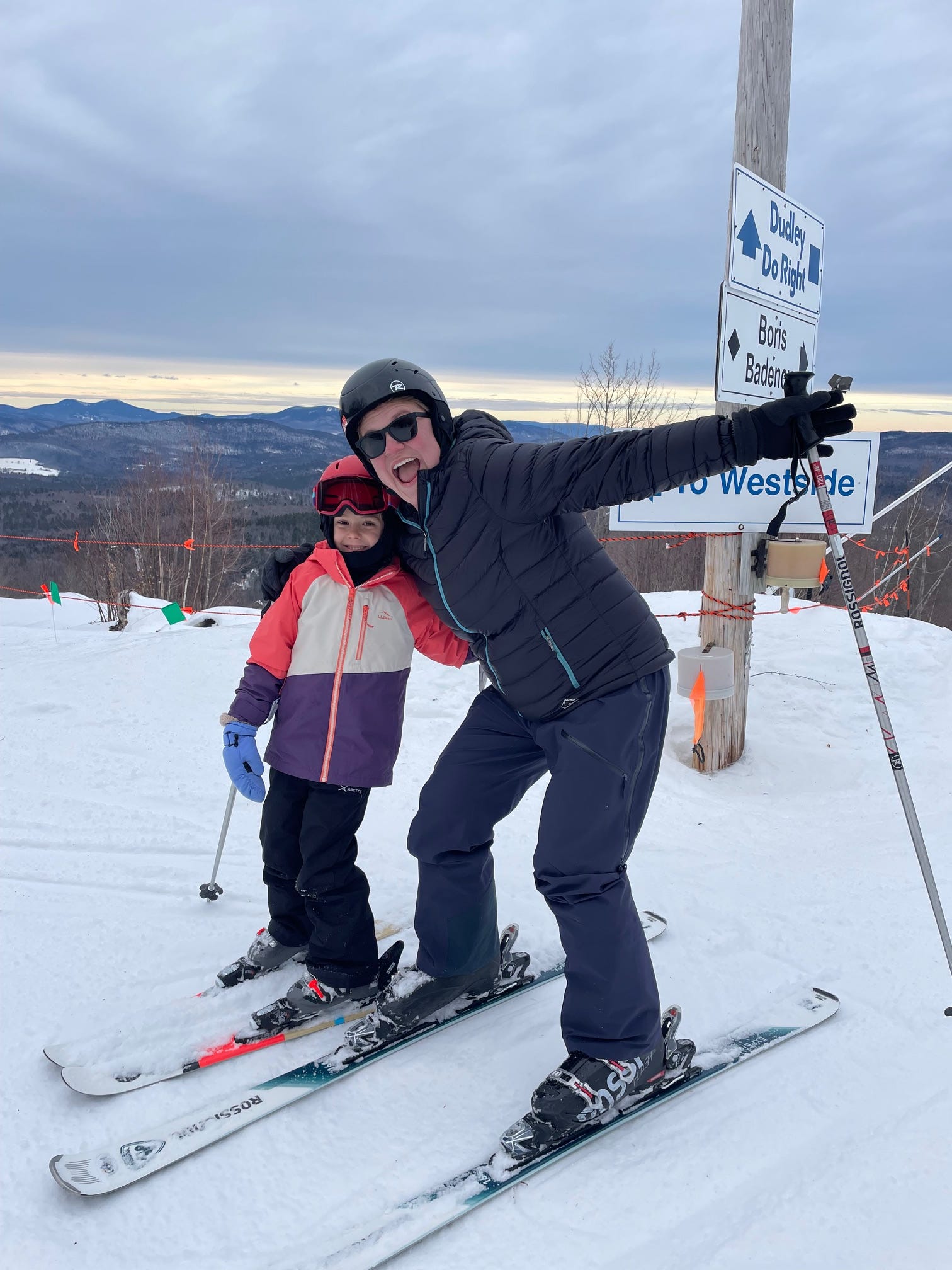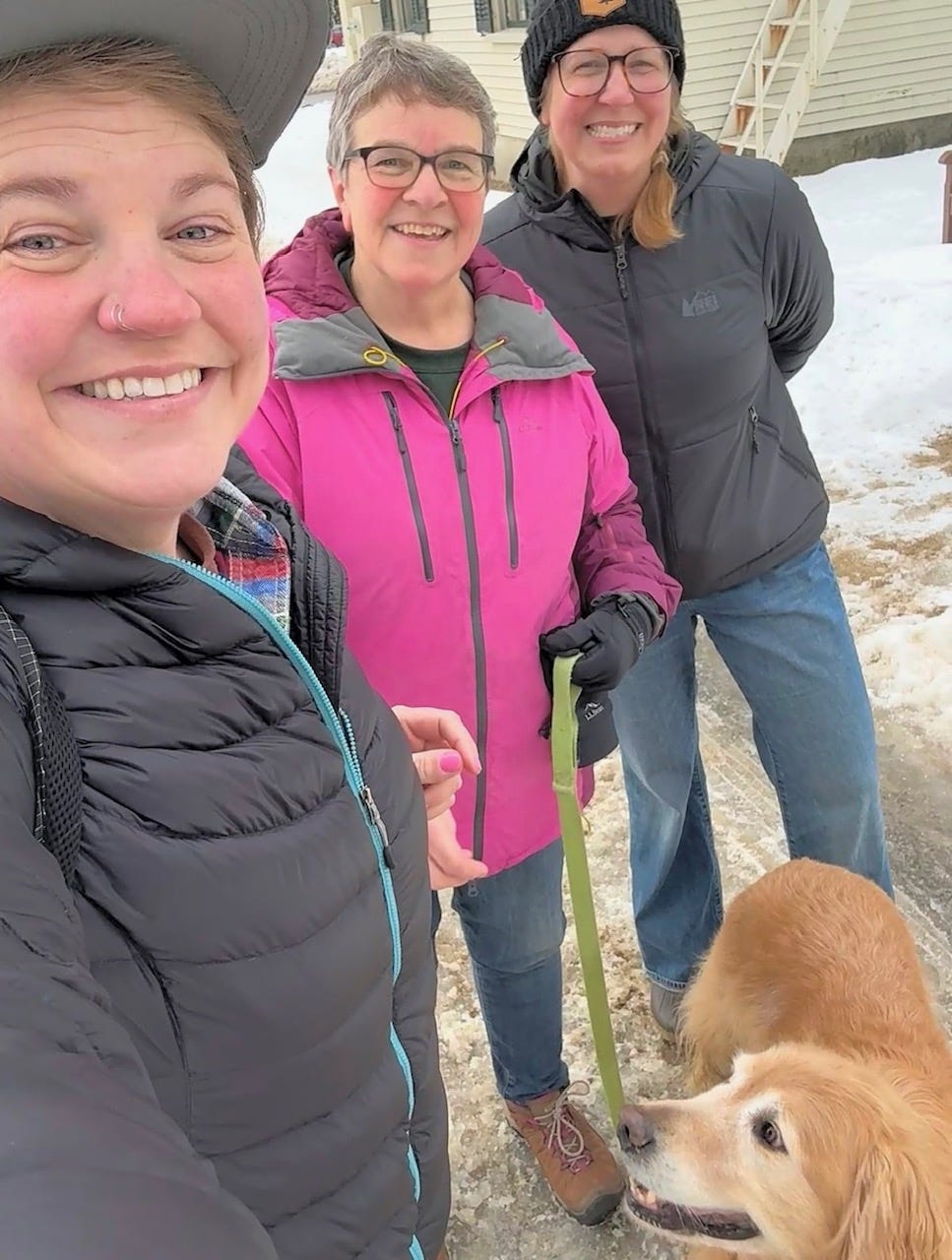 Tony and I enjoyed a visit from our Colorado girls, Annie and Cait, last weekend. They arrived on Thursday, left on Sunday, and managed to pack a lot into a long weekend—a delayed celebration of Christmas, visits with family and friends, walks with Eli the Wonder Pup, and Cait even joined Katie and Lila at Mt. Abram on Saturday afternoon for Lila’s first ski lesson of the year. She and Katie skied during the lesson, then had time enough afterward for a couple of runs with Lila.