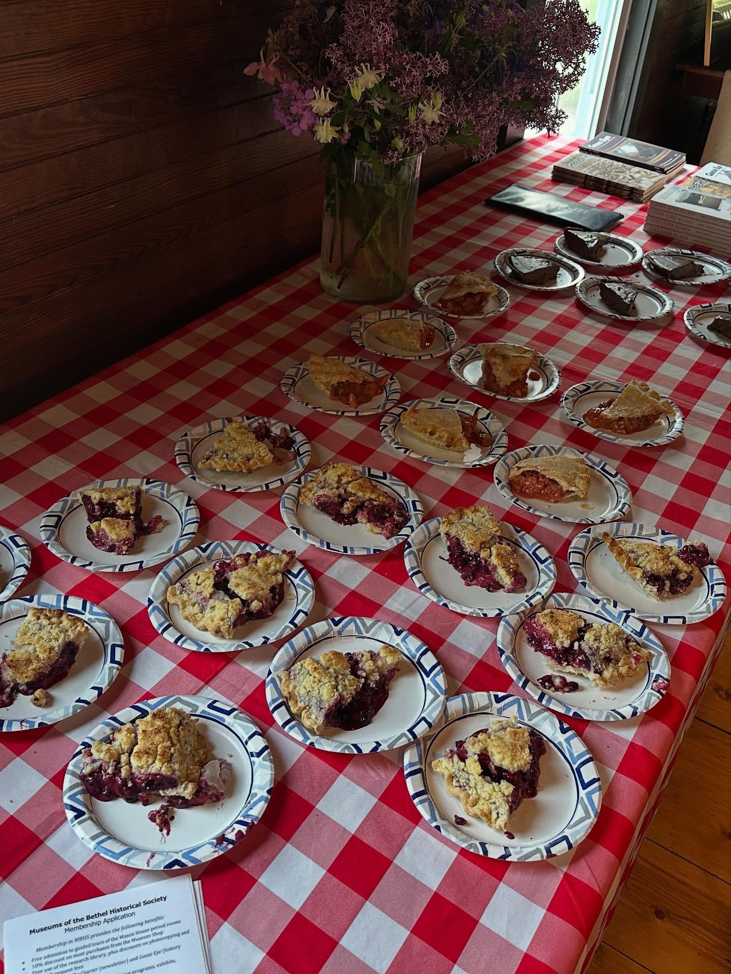 I did a lot of pie-baking last week, eight pies for the Museums of the Bethel Historical Society’s Thursday evening event at The Commons in West Bethel, and then four more for the First Universalist Church of West Paris’s annual Rhubarb Festival on Saturday.