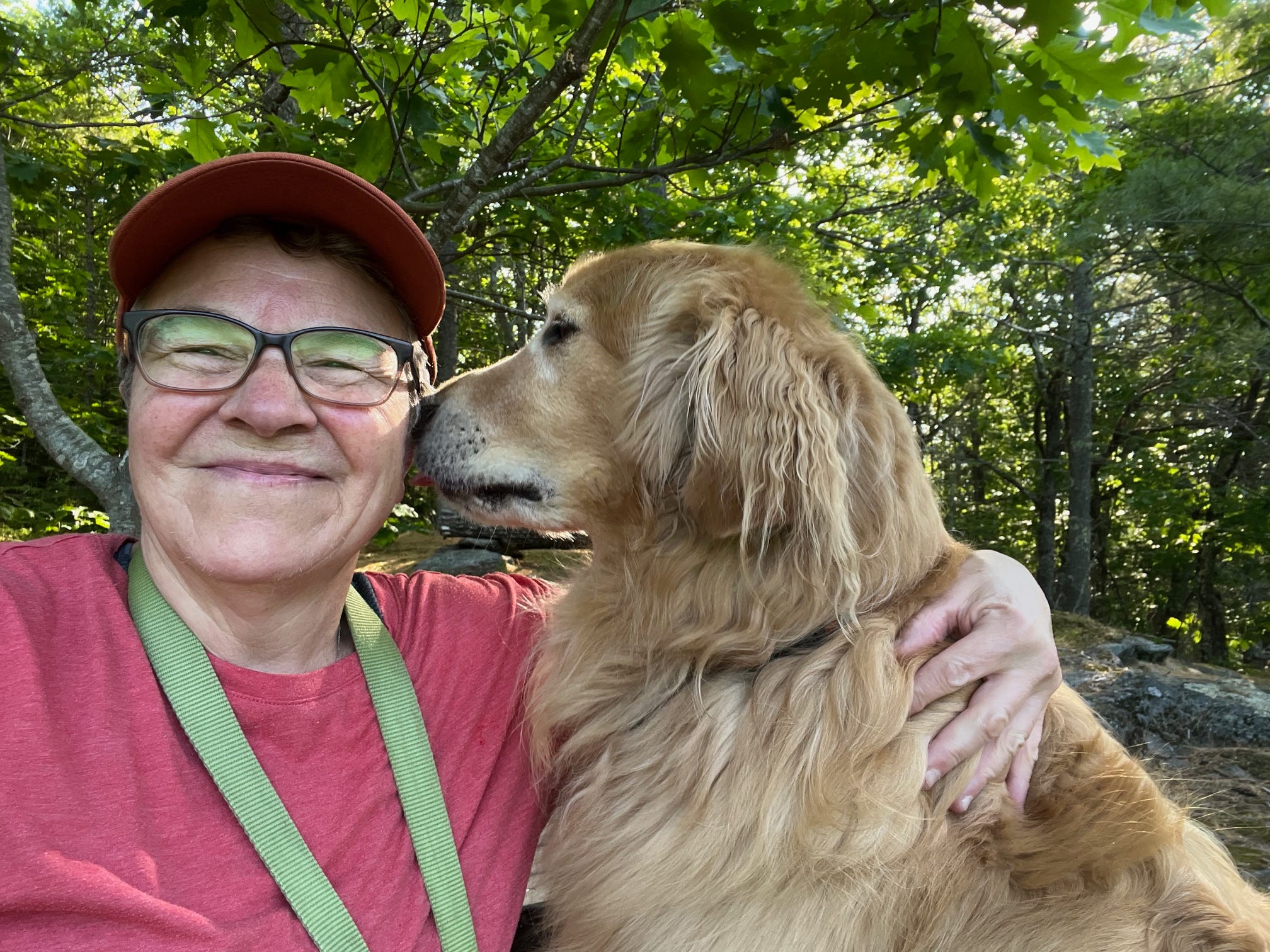 We have Eli the Wonder Pup as our house guest for three nights this weekend, while Will and Rosemary are on a camping trip to the Greenville area. That means three early morning hikes for me. On Saturday we only had time for a short hike before I had to head to Freedom, so we did the Orange/Blue Loop in Maggie’s Nature Park. This morning, Sunday, we headed up to Buck’s Ledge from camp and then continued on to the summit of Moody Mountain, for a three-and-a-half-mile round trip. My new right knee is holding up fine, but my yet-to-be-replaced left knee is complaining a bit this afternoon.