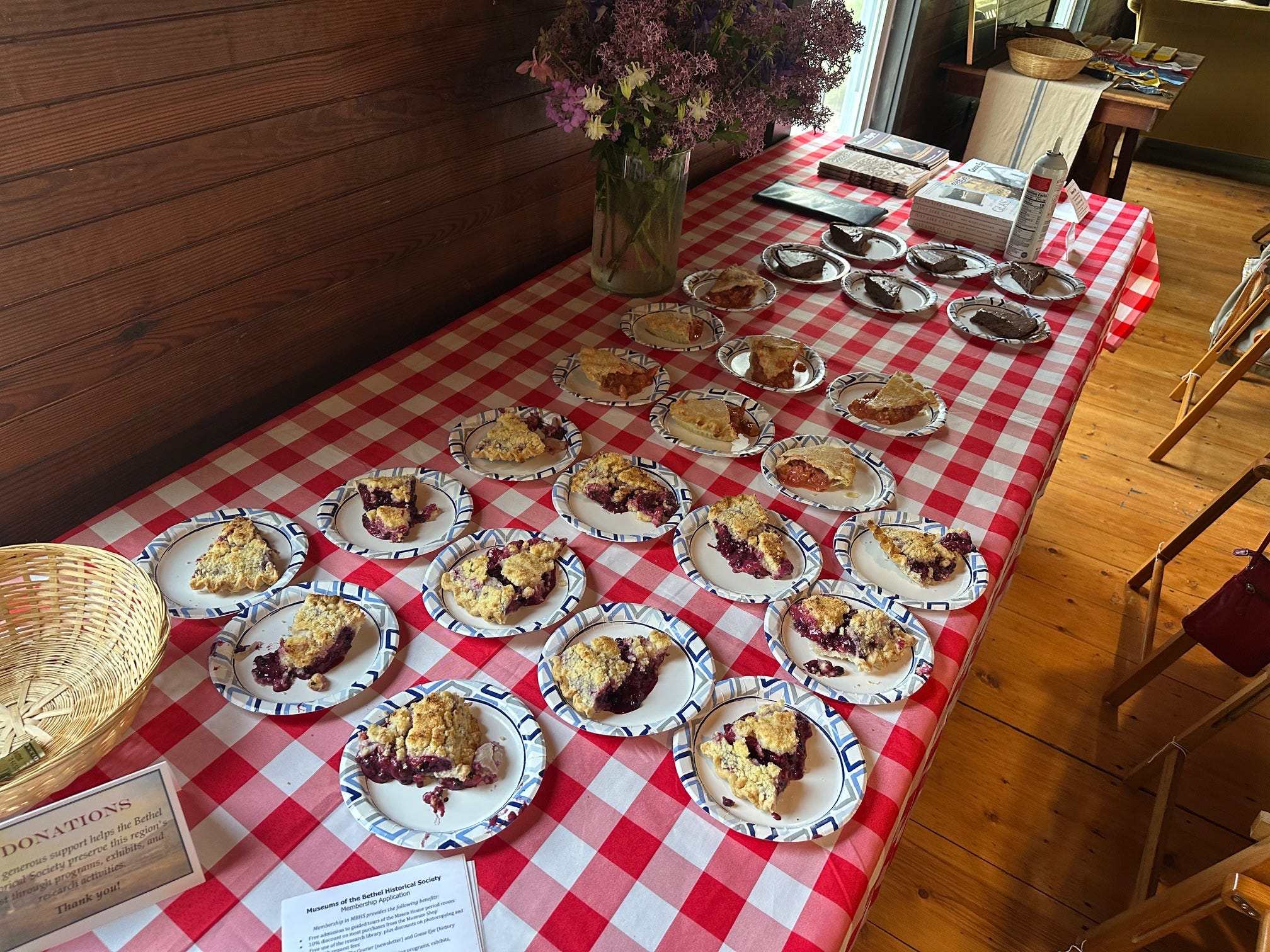 Naturally, the two hottest days of the year so far were the days when I was baking beans and pies for the old-fashioned Grange-style supper last night at the Pleasant Valley Commons in West Bethel. The Museums of the Bethel Historical Society held a wonderful (and wonderfully well-attended!) event there to celebrate the launch of the fifth edition of the society’s annual history journal, Goose Eye.