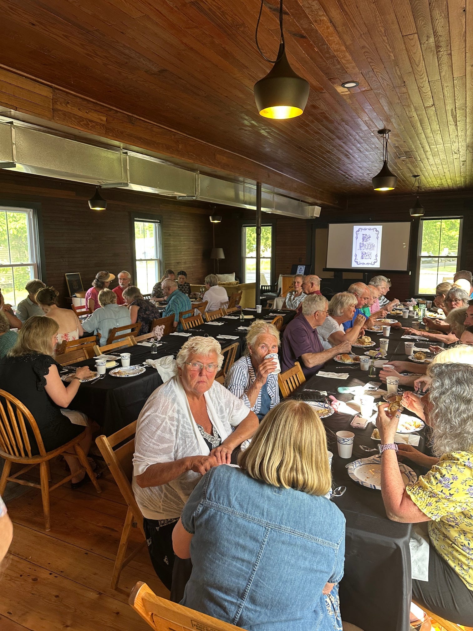 About 60 people attended, filling the old Grange hall, which has been lovingly restored over the past several years by our hosts, owners of The Commons, Celina Adams and Cameron Wake. I can’t thank them enough for their generosity, as well as their commitment to every detail of the historic renovation. And I especially appreciated the up-to-date, efficient, and air-conditioned kitchen, and Cam’s assistance in bandaging up the thumb I managed to slice with one of their super-sharp knives!