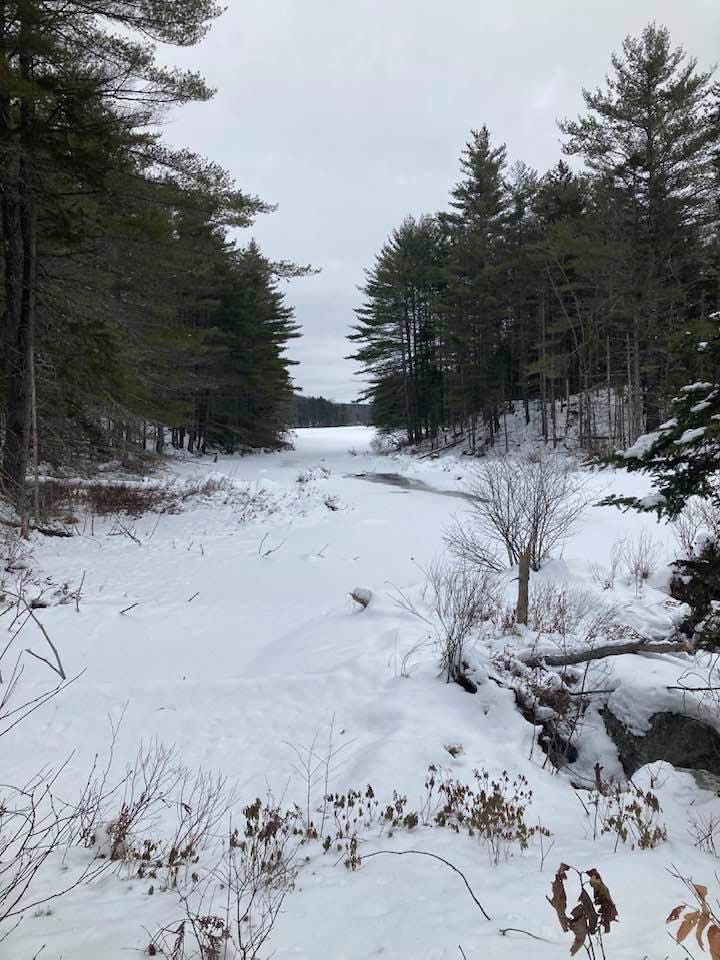 In my column of February 11, 2021, I wrote about four recent “hometown hikes,” two to the top of Peaked Mountain in Maggie’s Nature Park; one on the Sanborn River Trail, across the connecting trail to Overset Pond, around the pond, and back to my car via the Jeep trail (a.k.a. Overset Pond Lane); and the fourth to the overlook on Patch Mountain.