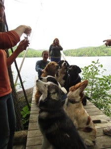We had a busy three-day weekend at camp, with visits from one daughter, three nieces, three significant others, and six extra dogs. (That’s a lot of dogs. So, so many dogs.)