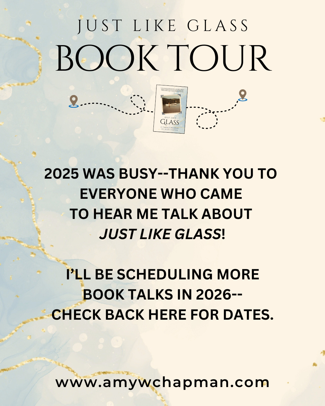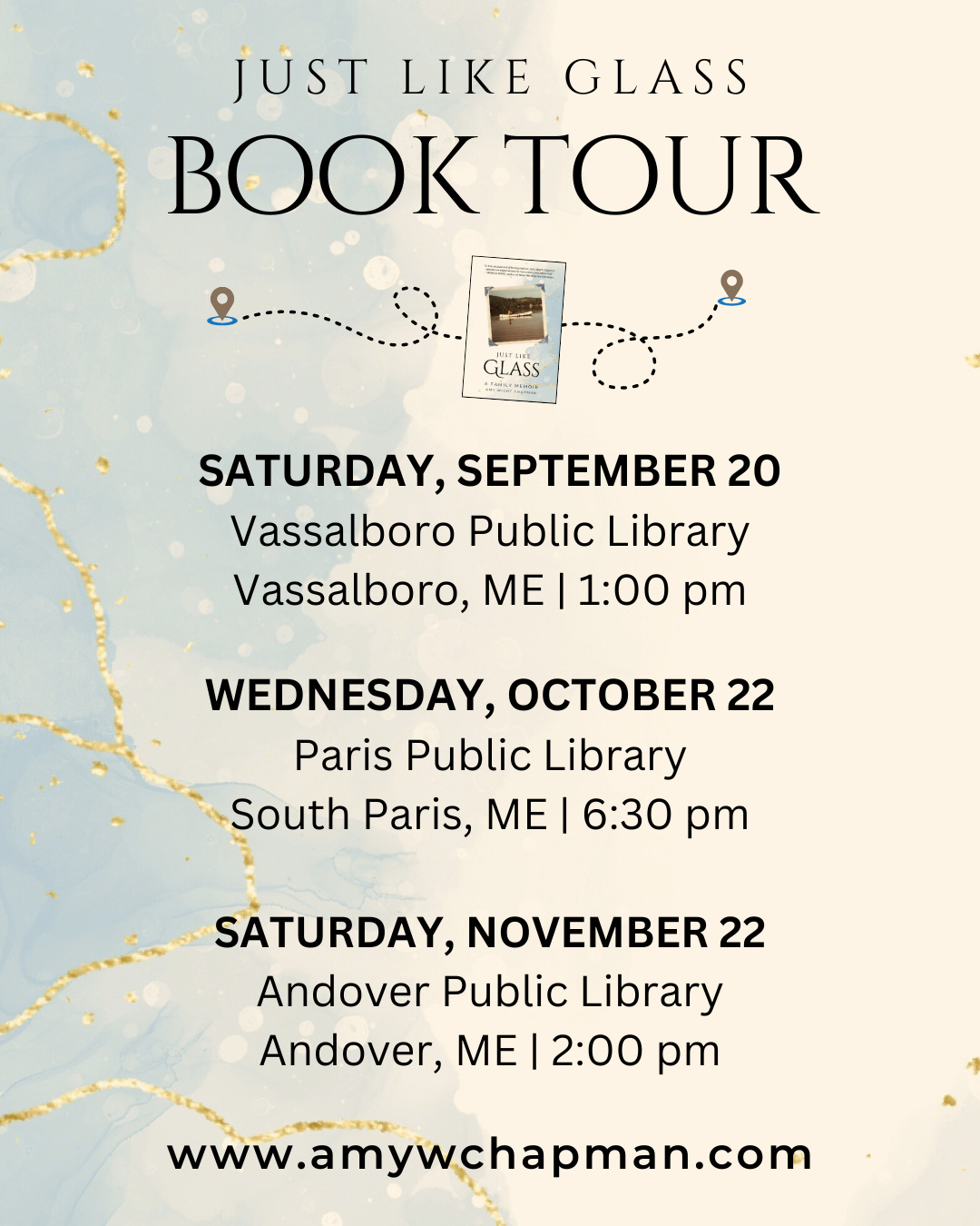 Greetings from the Milford (CT) Public Library! A copy of your book, "Just Like Glass" was recently donated to the library. I am happily adding it to our collection. If you are even back in CT and would be interested in visiting the library on your book tour, let's chat!