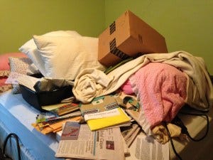 Even though this particular mess is behind my back when I’m writing, I still know it’s there, and that if I turn around, this is what I’ll see: